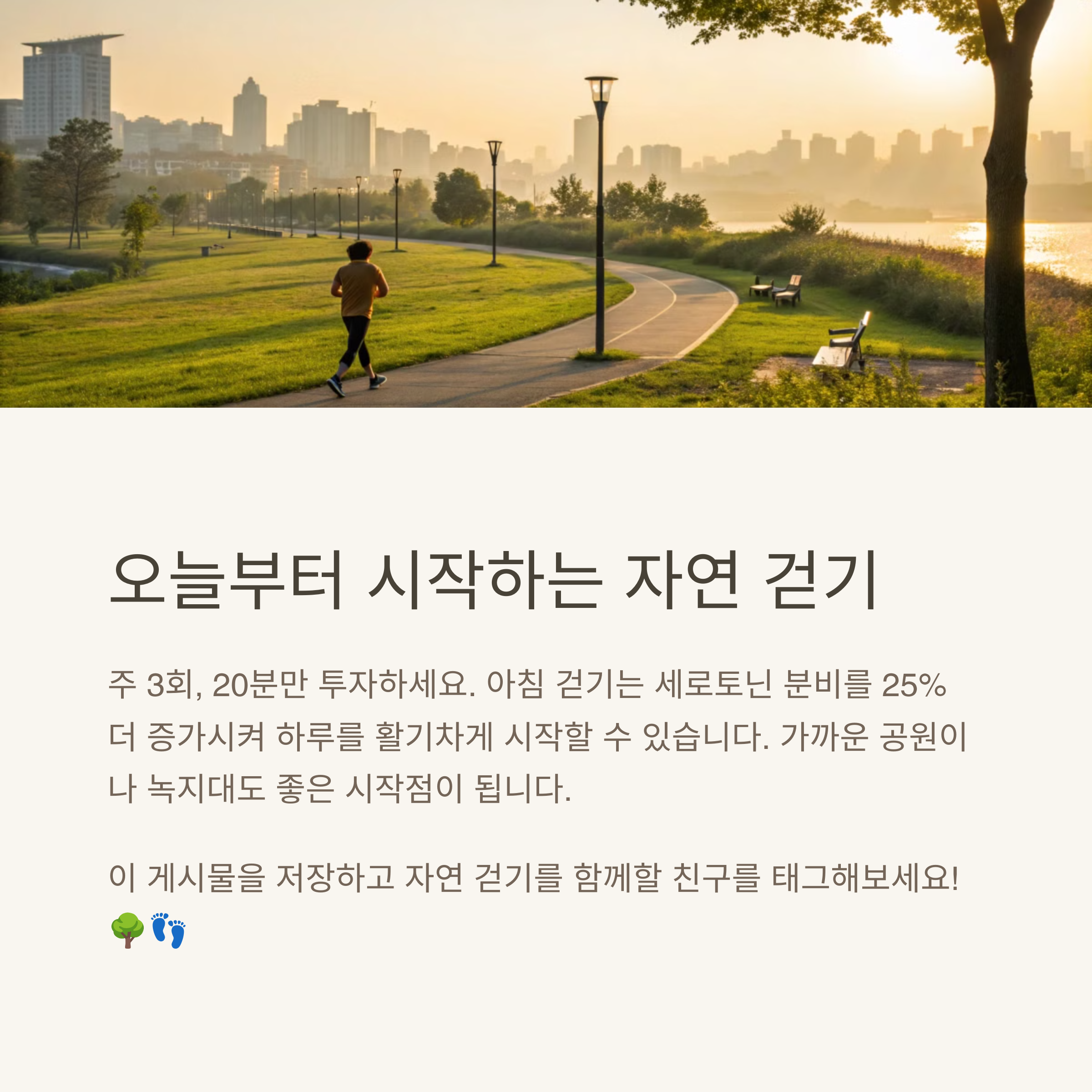 그 한 걸음이 내일의 기분을 바꿔줄지도 몰라요. 여러분의 자연 걷기 이야기도 들려주세요. 같이 걸어요, 마음이 향하는 그 길로.