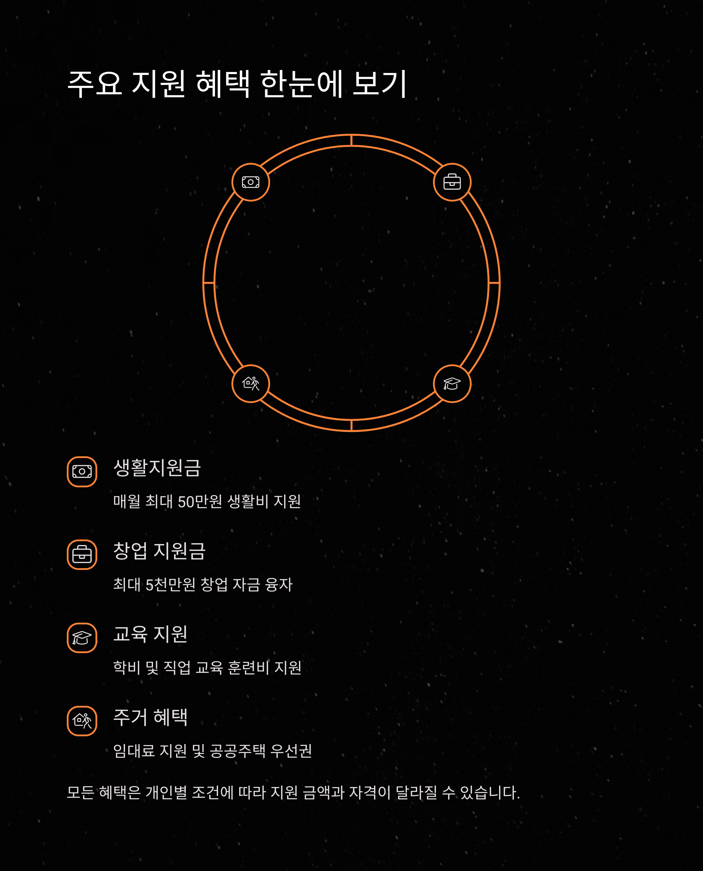 | 청년 지원금 | 자영업자 혜택 | 기초생활보장 |