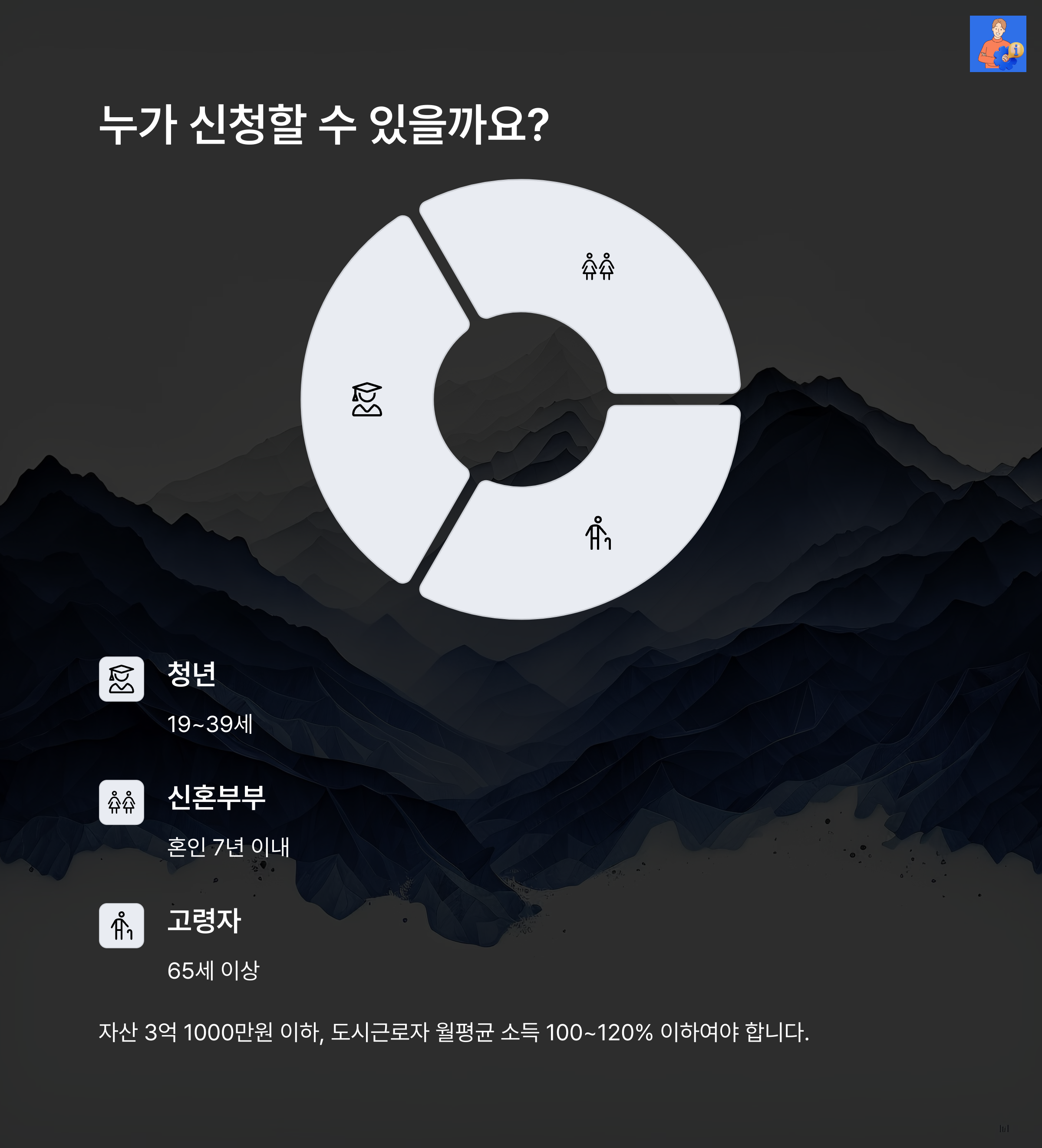 | 청년 | 19~39세 미혼, 무주택자, 소득 및 자산 기준 충족 |