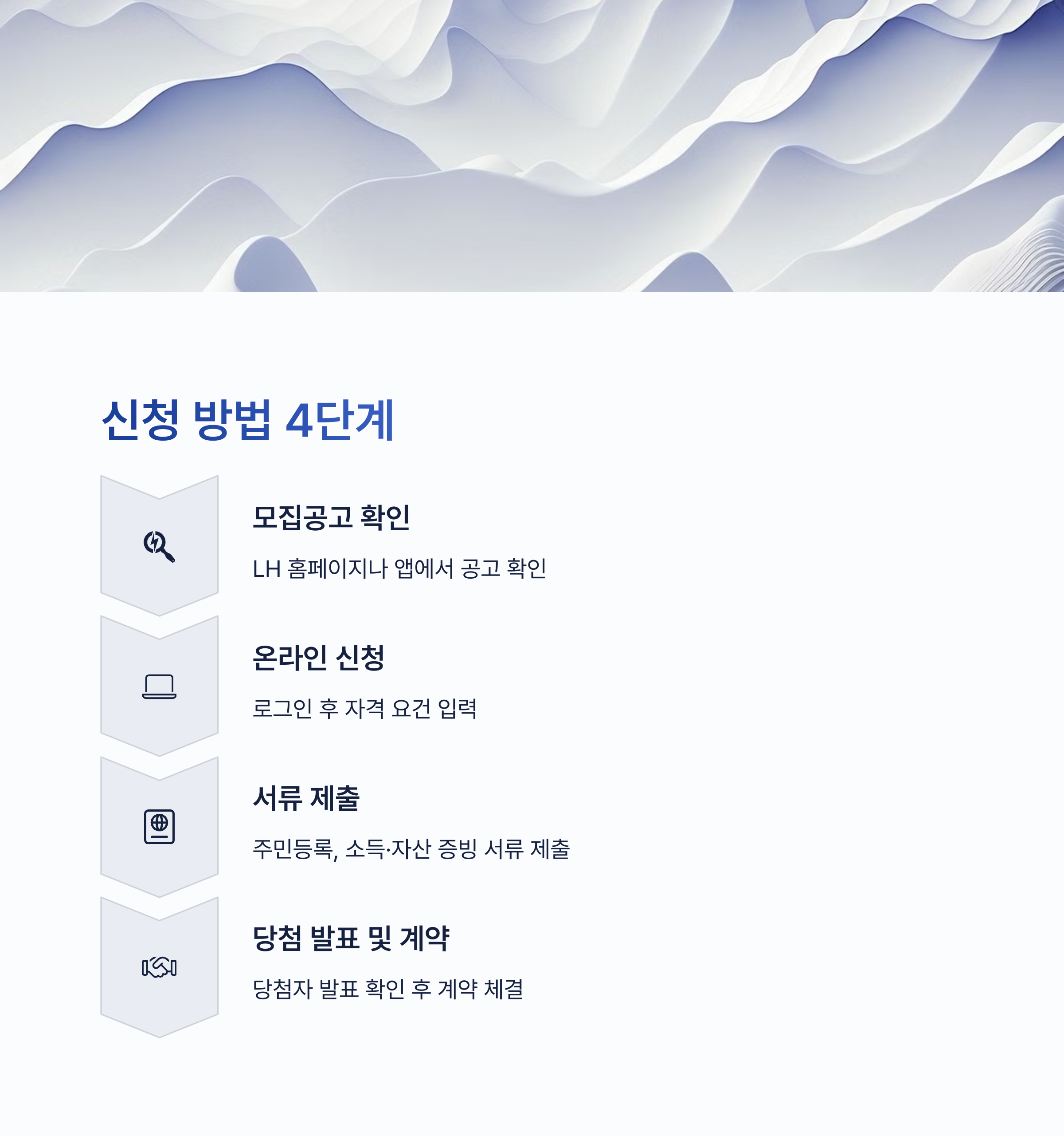 행복주택 신청은 한국토지주택공사(LH)나 지방공사 홈페이지에서 진행됩니다. 매물 공고가 뜨면, 그에 맞춰 신청 기간 내에 절차를 진행하면 돼요. 절차는 생각보다 간단하지만, 일정과 서류 준비는 꼼꼼하게 챙겨야 해요. 아래에 전반적인 신청 과정을 정리해봤습니다.