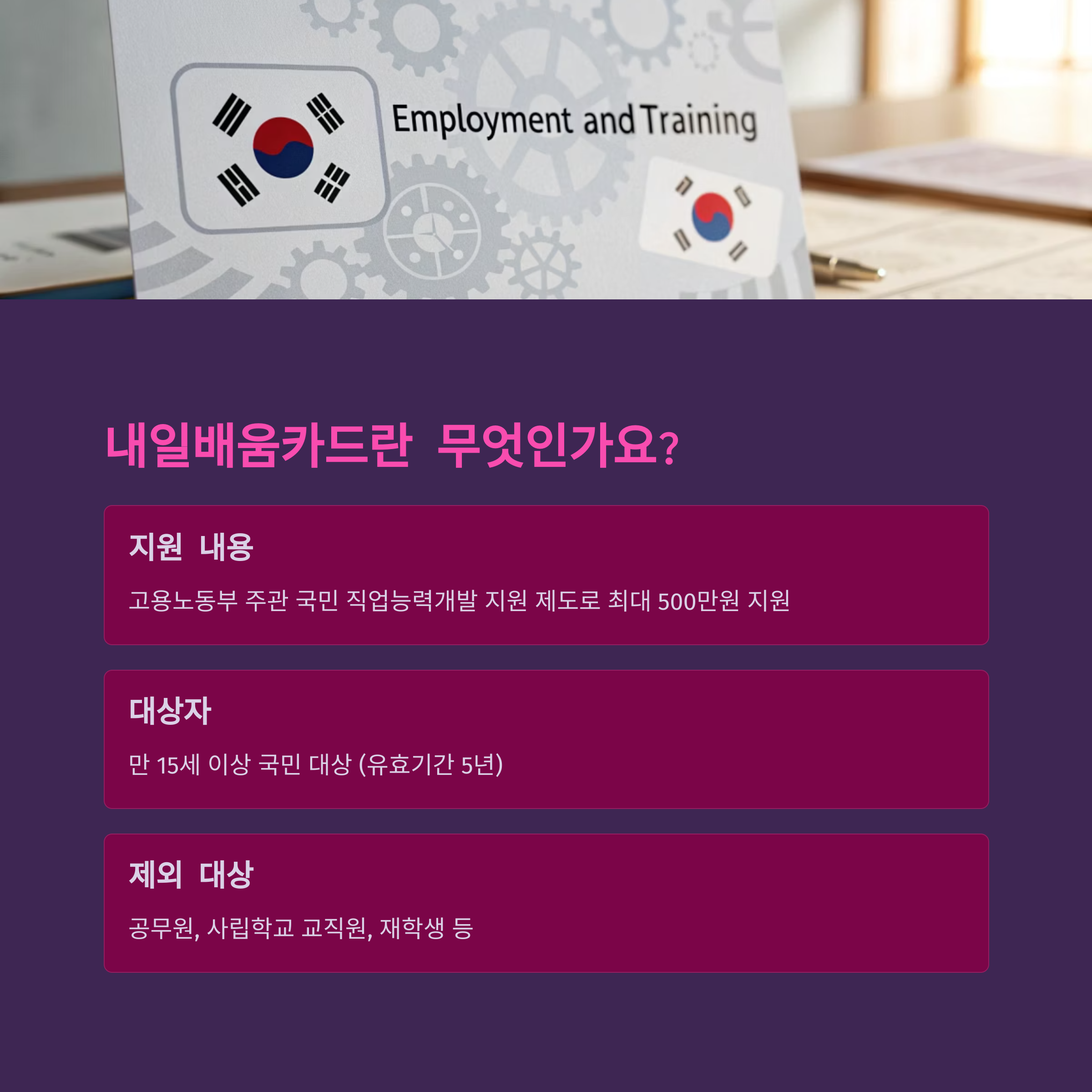 내일배움카드는 **국민 누구나 직업 훈련을 받을 수 있도록 지원하는 제도입니다